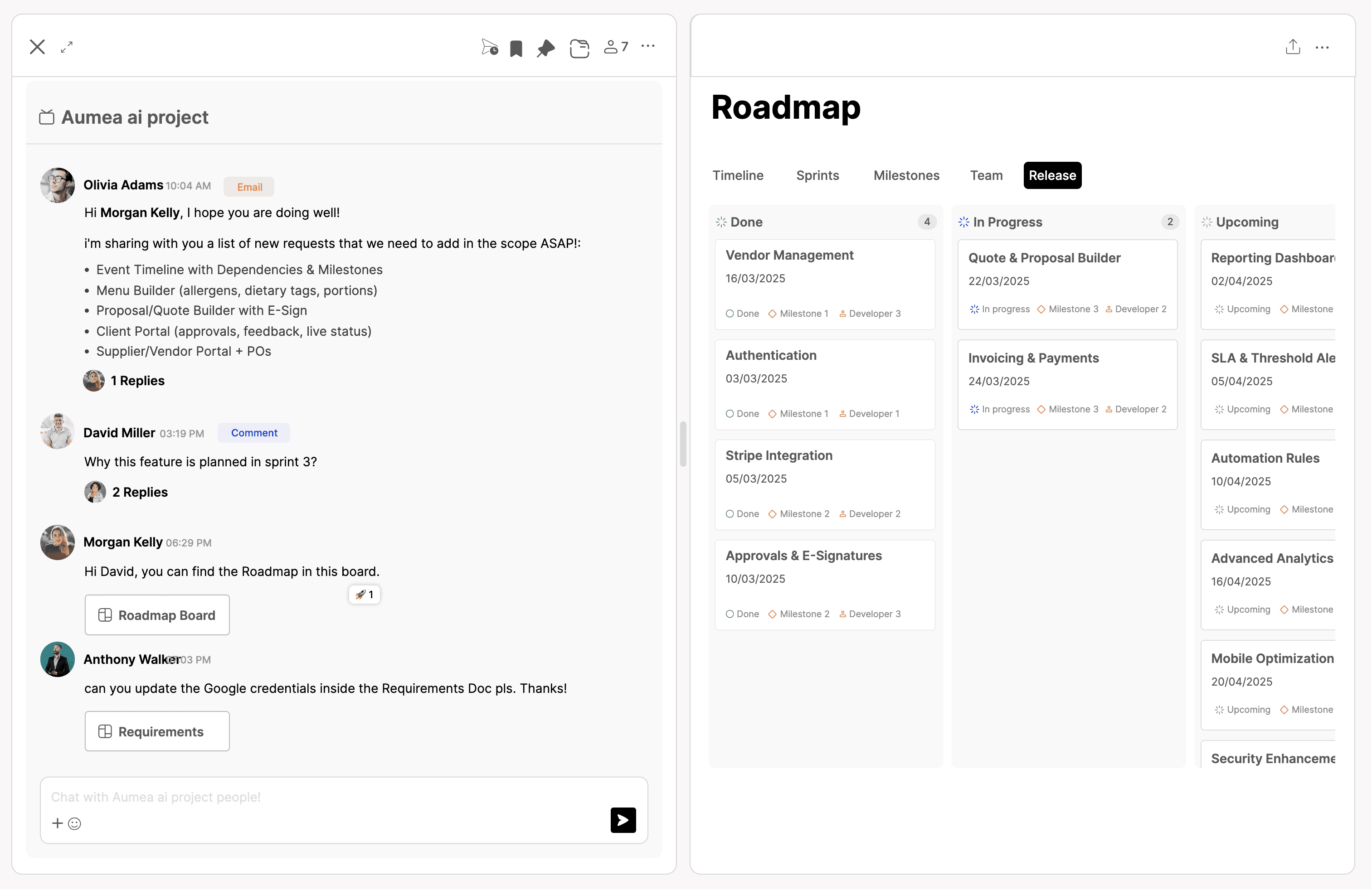 Aumea brings smart communication and organized collaboration together—every client message turns into structured updates, shared feedback, and clear progress from onboarding to delivery.